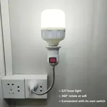 E27 Direct Plug in Swivel Head E27 Socket Bulb Holder with Switch EU Plug LED Table Lamp Stainless Steel Hose Steering Lever