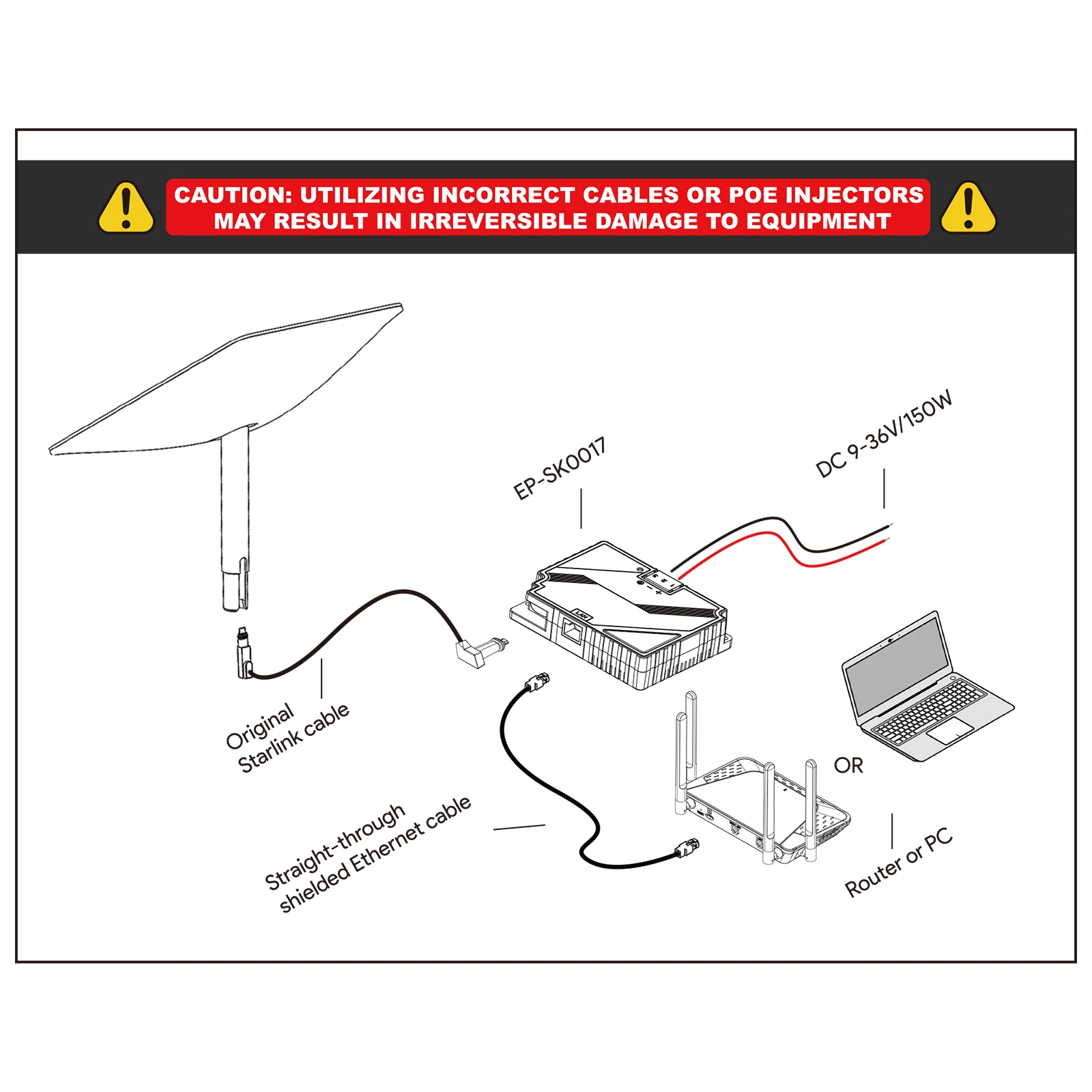 EDUP SK0017 150W 3 in 1 PoE Injector to Starlink V2 with Comprehensive Protection Starlink Standard Actuated adapter Outdoor RV