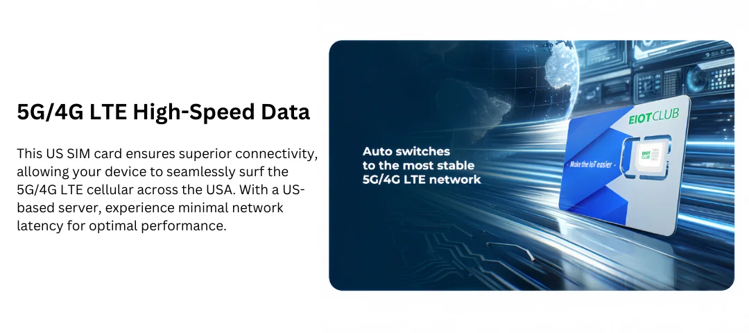 EIOTCLUB USA Prepaid SIM Card – 300MB 30DAY, Supports AT&T and T-Mobile Networks, High Speed 5G/4G LTE Coverage, Data-Only SIM