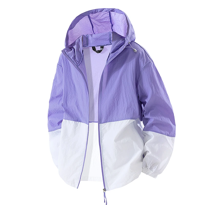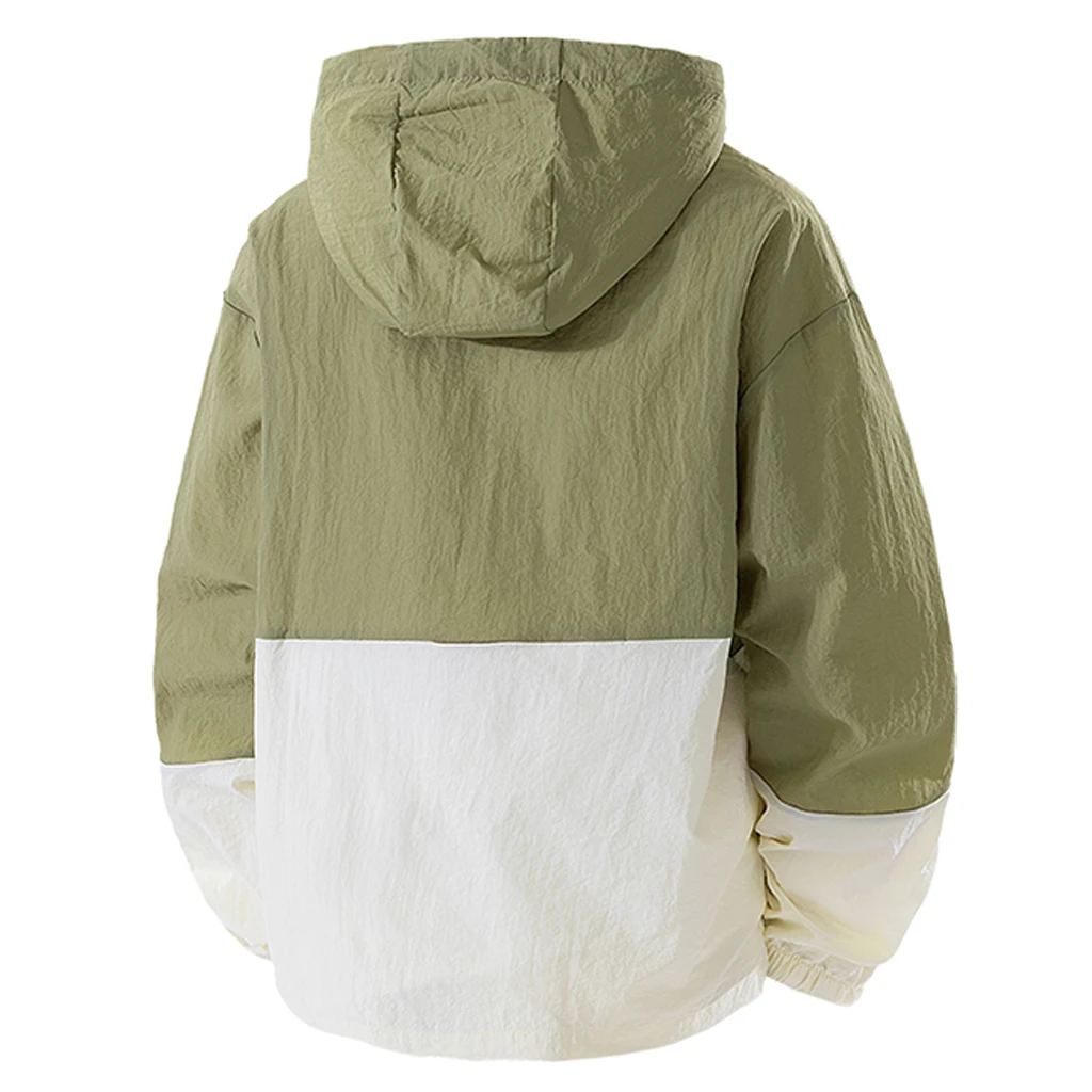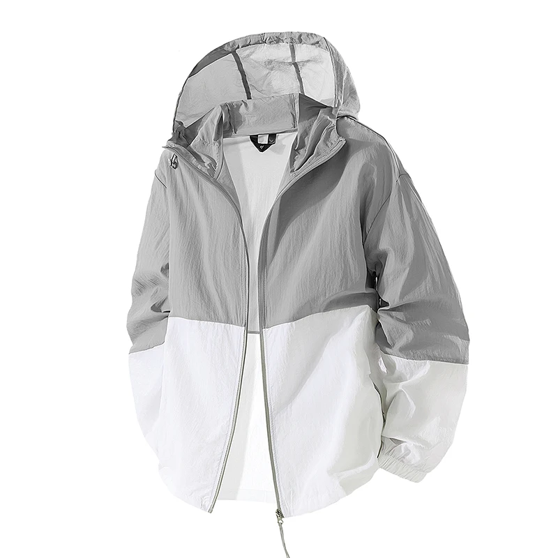 Hooded Sun Protection Jacket Men Outdoor Patchwork Lightweight Windbreaker Zip Up Coats UV Proof for Hiking Trekking Fishing