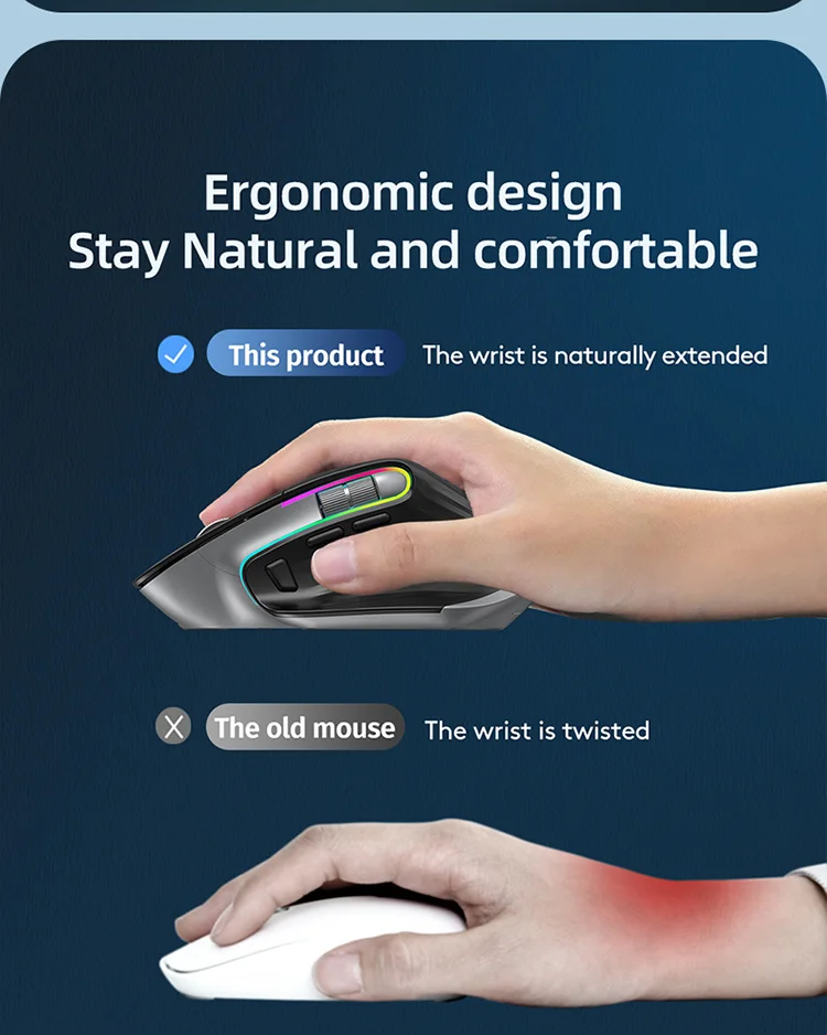 JOMAA 2.4G Wireless Mouse Bluetooth RGB Rechargeable Ergonomic Design Computer Mice For Computer Gaming Office