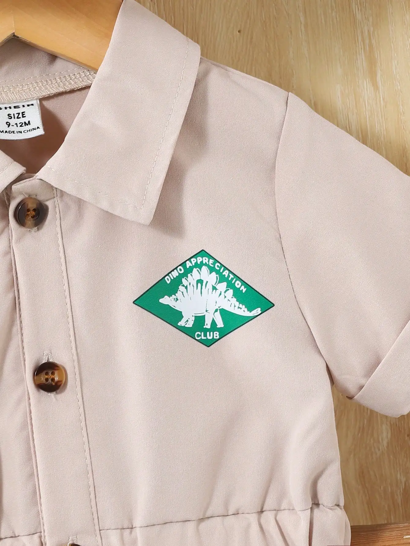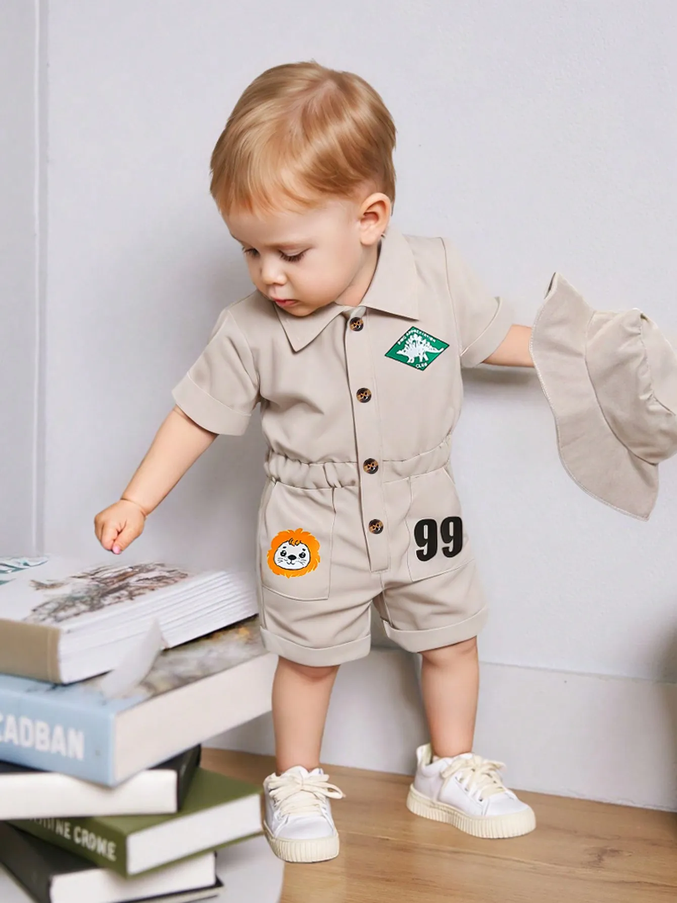 New Summer Newborn Vacation Travel Outdoor Casual Fashion Cute Lapel Romper + Hat Cartoon Digital Print Romper Suit